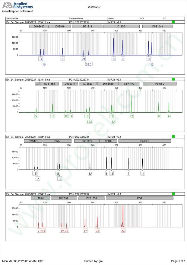 Amelogenin X CSF1PO 12 D2S1338 17,25 D3S1358 17 D5S818 13 D7S820 10,11.3 D8S1179 15 D13S317 8,11 D16S539 12,13 D18S51 11,17 D19S433 14,16 D21S11 29,32.2 FGA 22 PentaD 9,14 PentaE 7,14 TH01 7,9.3 TPOX 8,11 vWA 18,19 D6S1043 11,13 D12S391 19,22 D2S441 13,15  -
